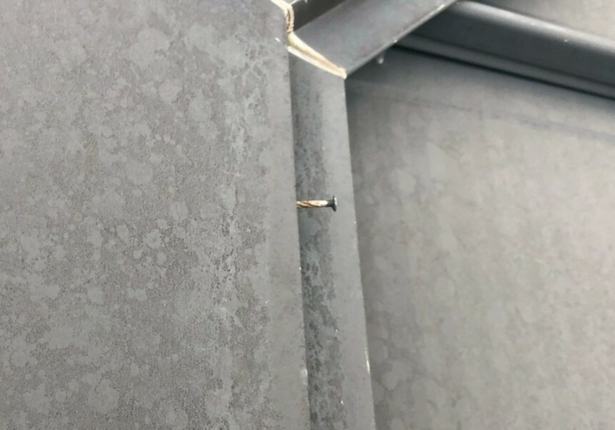 強風で板金が飛ばされしまう恐れもありますので、抜けにくいビスに打ち替えると安心です。