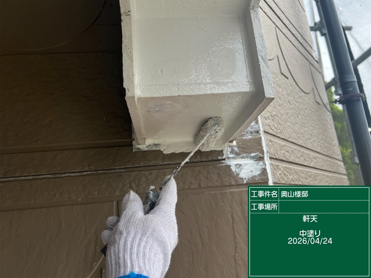2024年○月○日、小平市O様邸にて軒天井の補修と塗装工事を行いました。