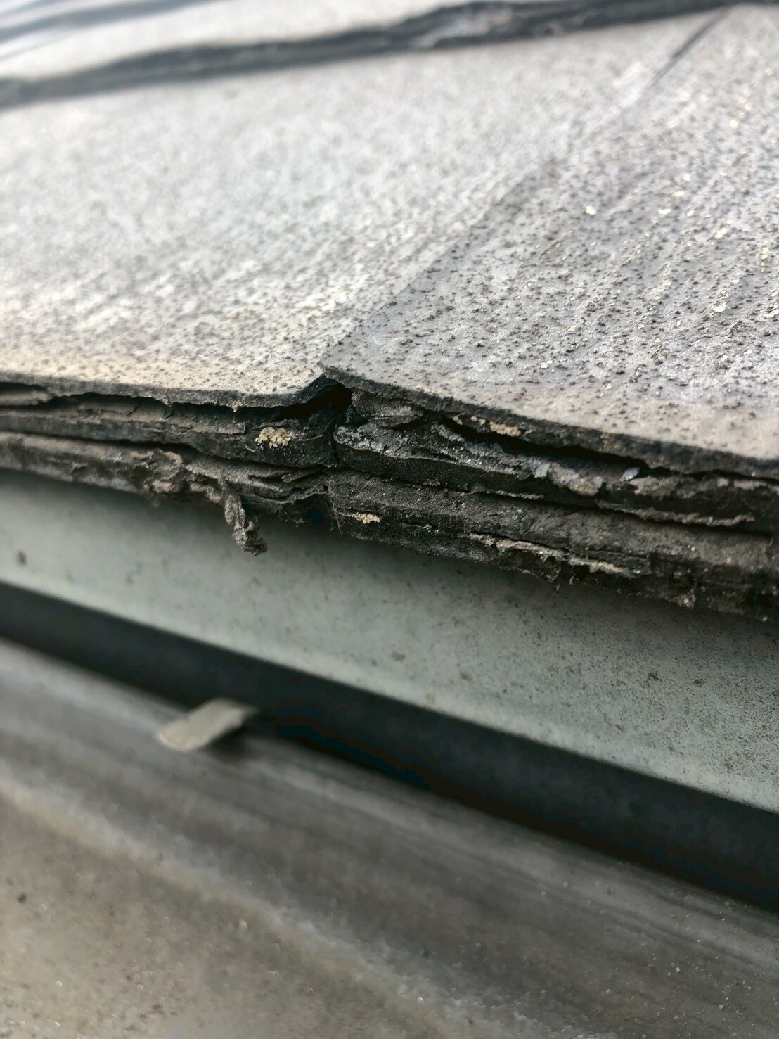 実際に屋根を確認してみると、屋根全体にパミール特有の瓦の剥がれ「層間剝離」が発生しており、雨漏りの危険性が高い状態になっていました。