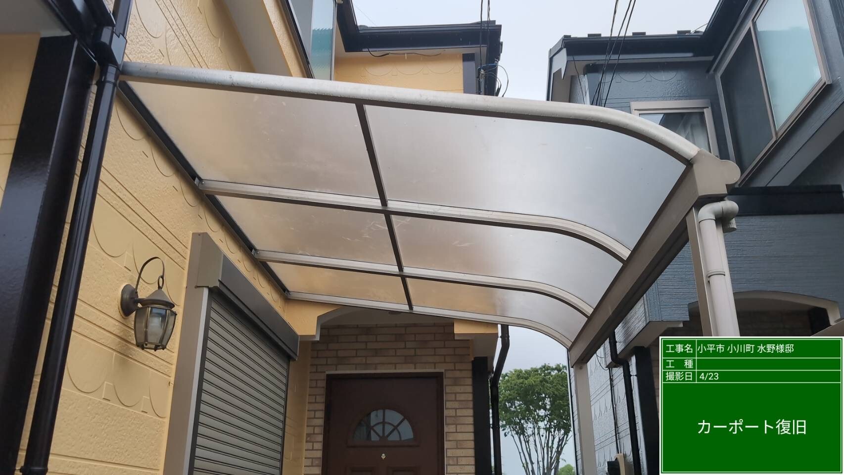 - タイトル: 東村山市近郊 小平市M様邸 外壁塗装・屋根カバー工事後のカーポート復旧