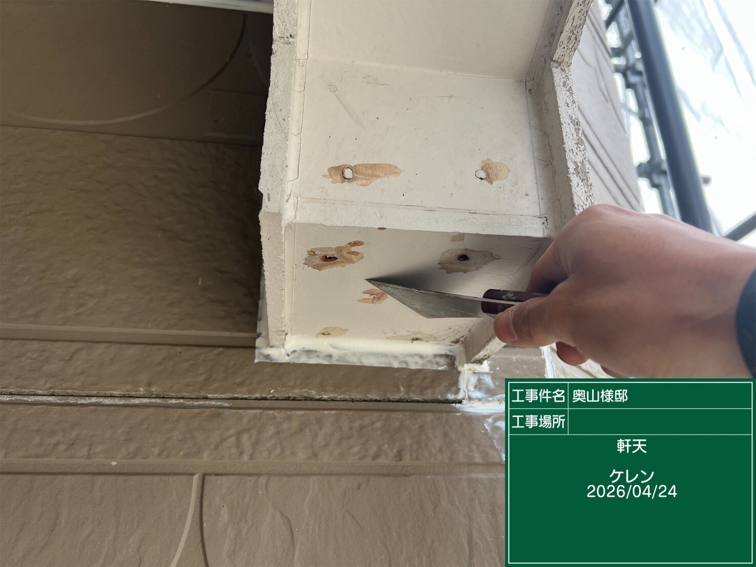 2024年○月○日、小平市O様邸にて軒天井の補修と塗装工事を行いました。
