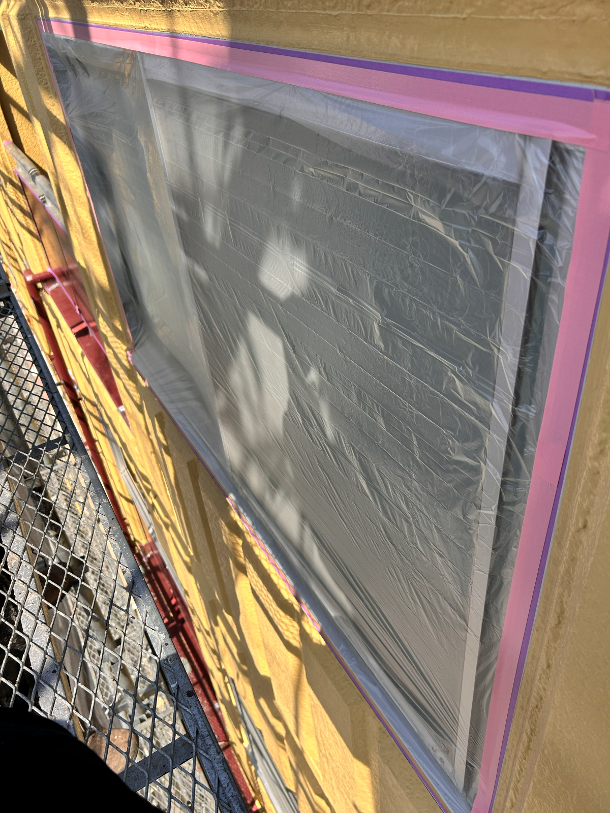 養生は外壁と窓との境目を綺麗にだす目的もあります。